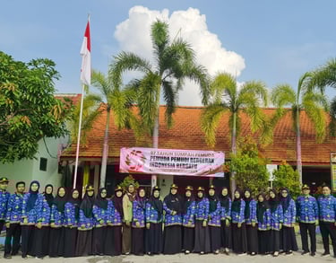 Peserta upacara peringatan HUT ke-80 RI di Kecamatan Tarik