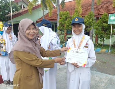 Foto 2. Penyerahan Piala Dan Piagam Kepada Juara 1, 2, dan 3 Oleh Kepala SMPN 2 Tarik
